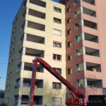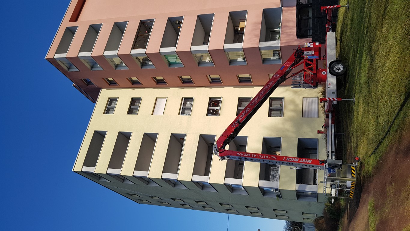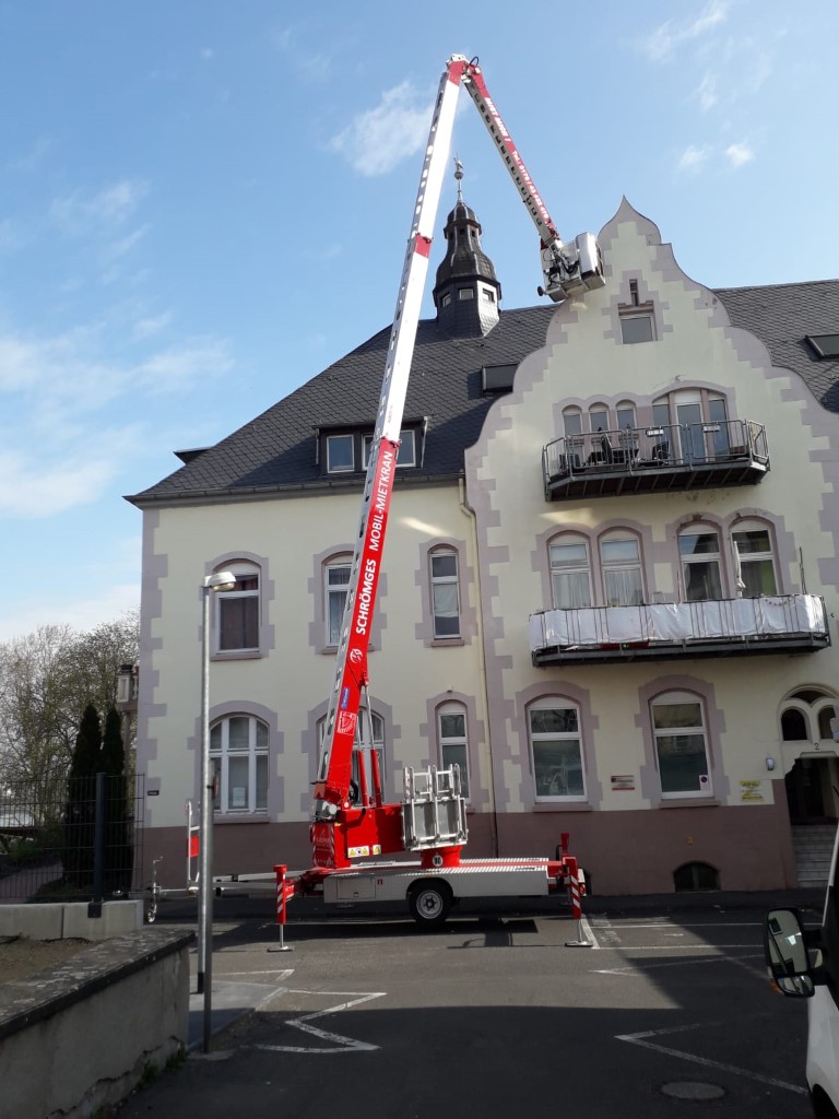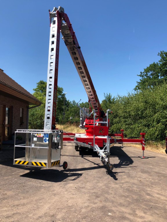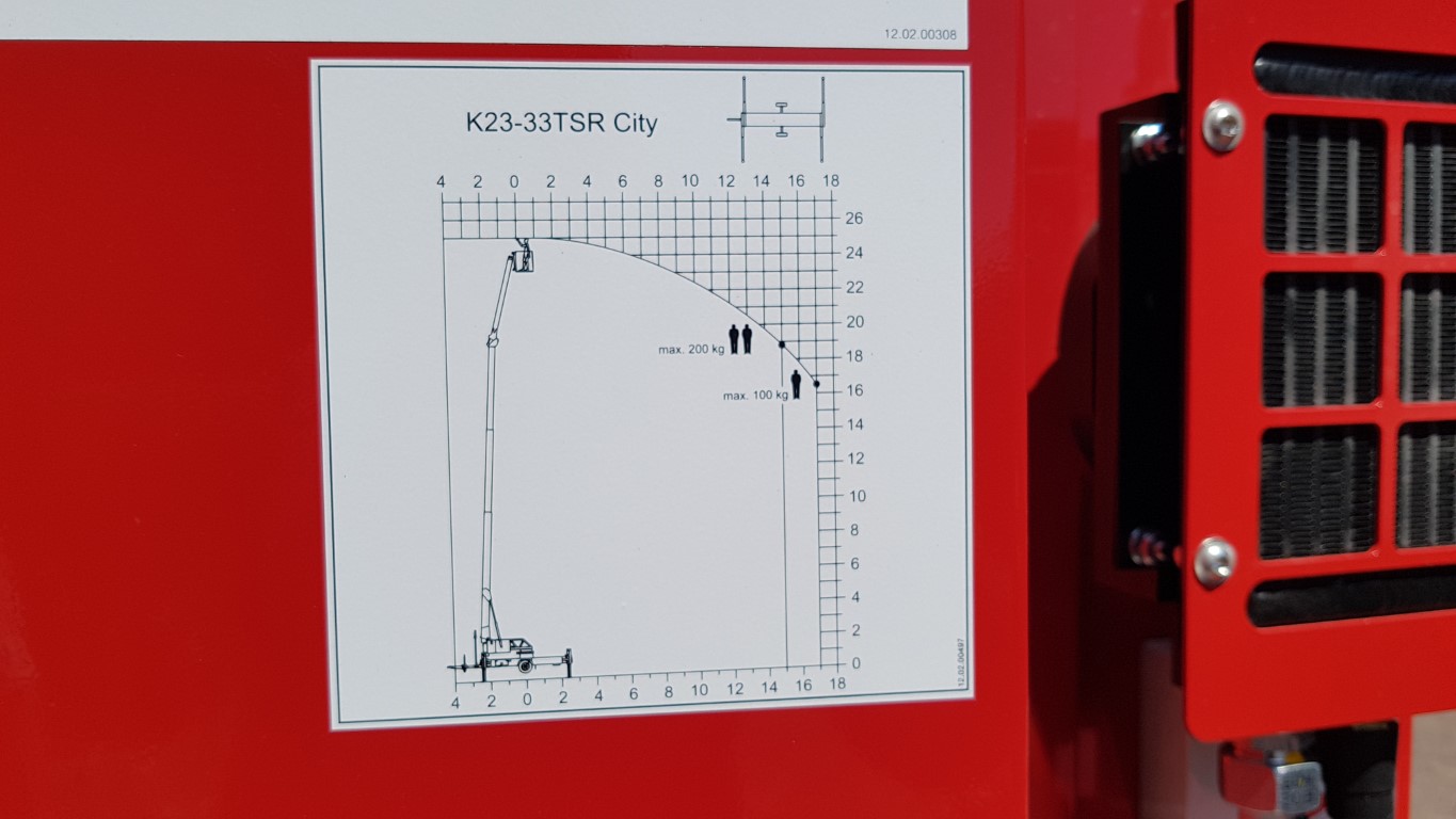 Bis zu einer Höhe von 24m und einer seitlichen Auslage von 17m ist die Hubarbeitsbühne einsetzbar.