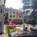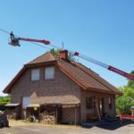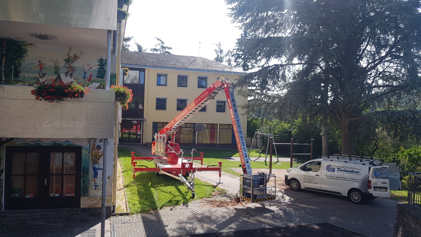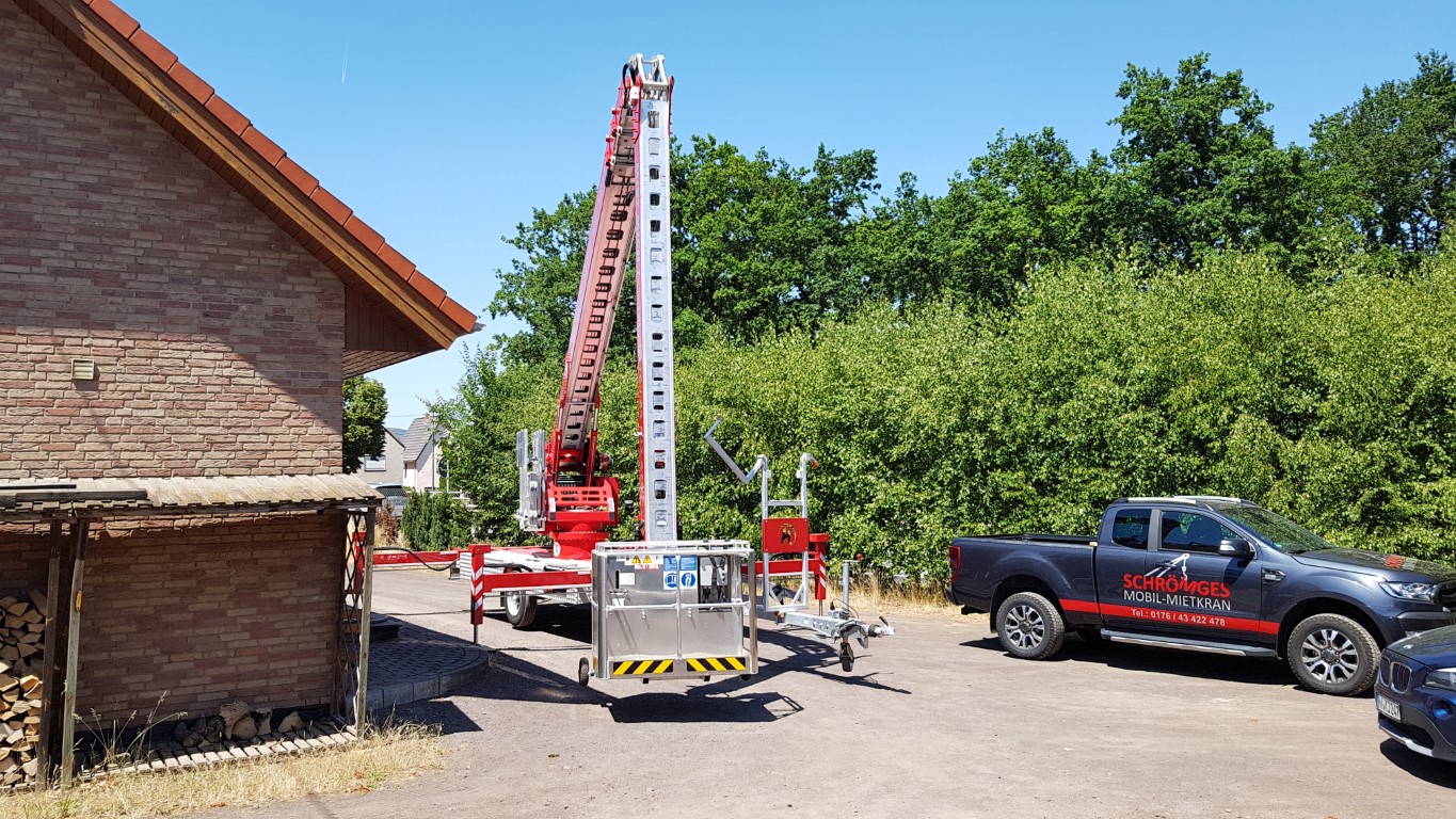 Die Hubarbeitsbühne ist für 2 Personen zugelassen und perfekt für Reparaturarbeiten, Taubenstop anbringen, Sparren verschiefern/verkleiden oder Baumfäll- und Pflegearbeiten. Natürlich ist er auch für viele andere Tätigkeiten einsetzbar.