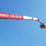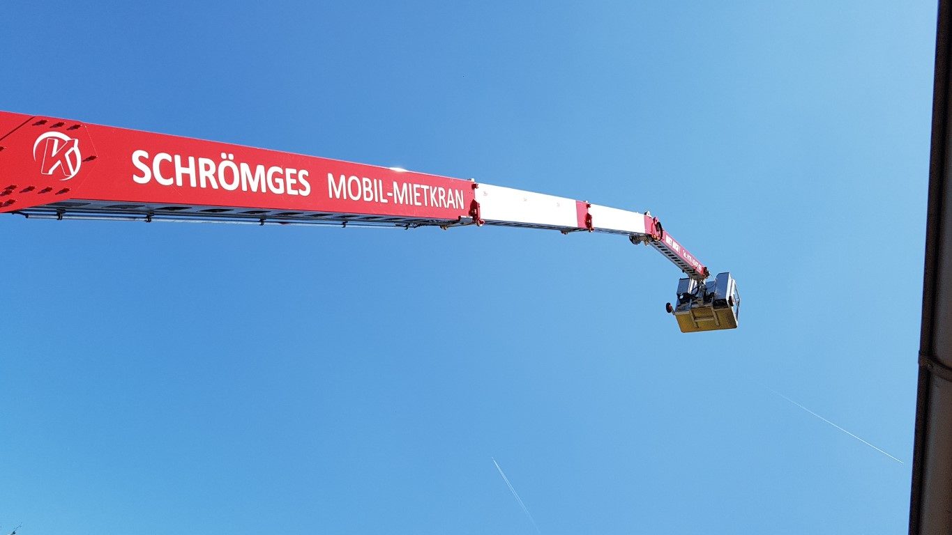 Durch seinen Selbstfahrantrieb komme ich mit dem Anhängerkran auch durch Toreinfahrten und Unterführungen, wo kein LKW-Kran hinkommt. Dadurch ist er an vielen Stellen einsetzbar, wo man ansonsten gar nicht oder nur mit einem großen, mehreren Tonnen schweren LKW mit Arbeitsbühne arbeiten kann, der natürlich auch entsprechend kostet.